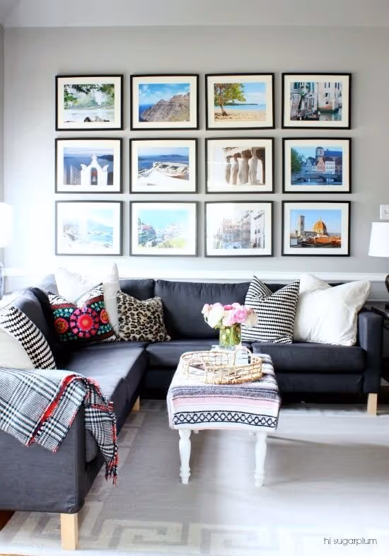 Using one color for the frames creates a big visual impact and it allows the photos to take center stage! The bonus is that using your own photography for wall art won't break the bank!