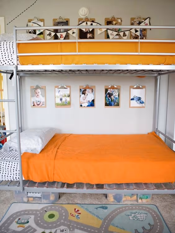 I love to design a home that incorporates a fun and unexpected way to display family photos. Gone are the days of a traditional posed family photo, hung above the mantel in a gilded gold frame and a light shining down on it. No, no, no! Today, there are tons of creative ways to display your most treasured pics!
