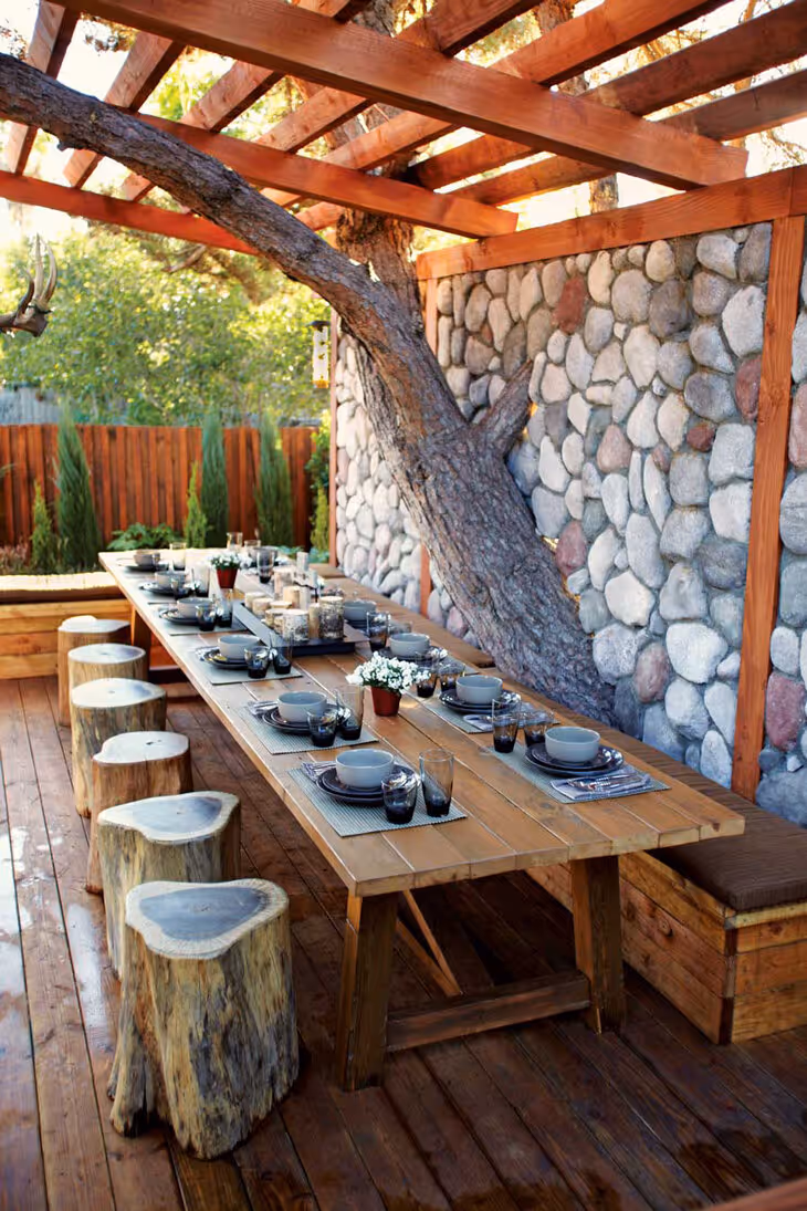 If moving furniture feels like too much work, grab some pallets and create your own table like this one! Outdoor dining isn't meant to be fancy or formal. Take some cues from your surroundings and enjoy the relaxed, casual experience that dining al fresco has to offer. Don't forget to throw some big pillows down for extra comfy seating too!