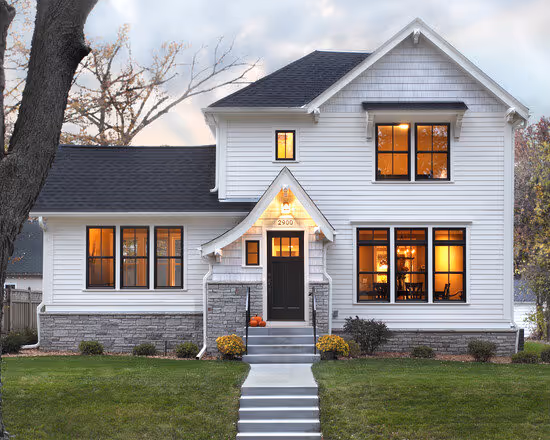 I really, really love how the black window trim breaks from the norm and it has an awesome visual effect on the outside of the home.