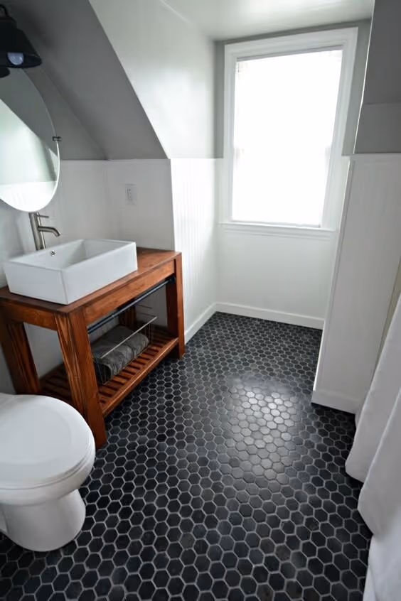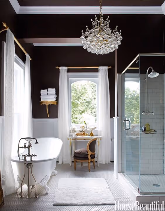 If you're starting to feel courageous and want to give this dark hue a whirl, but don't want to commit to using it in your main living space, why not try it in a bathroom? Have fun with it! Give that space a dramatic redesign. Black baths can be either glamorous or they can have a more modern industrial vibe. Both are equally gorgeous!