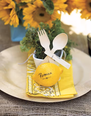 2. Set the scene: Whether you choose a theme or decide to just go with the flow, setting the table outside is a fun and easy way to get the party started. Don't fuss about having matchy-matchy chairs and place settings! It'll create a more colorful and relaxed atmosphere if you mix it up a bit!