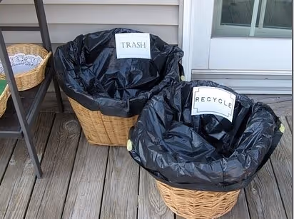 6. Provide places to throw the trash: For a quick and easy place for trash, you can line a pop up laundry basket with a trash bag and viola! You've got yourself an inexpensive container! Label each can so guests know where to put recycling.