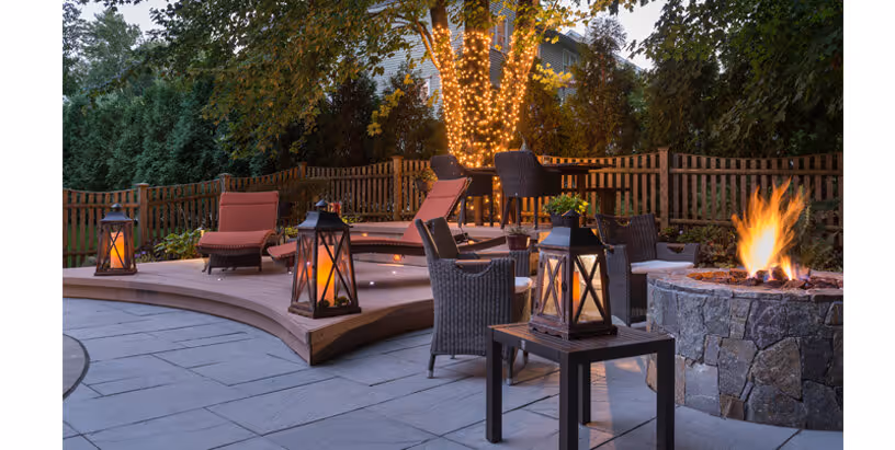 8. Turn the light into the night: Add some twinkle lights wrapped around the trees and the mood carries into the evening! Paper lanterns are an inexpensive way to add lights too. Light up the firepit and your guests will want to stay until the wee hours of the night!