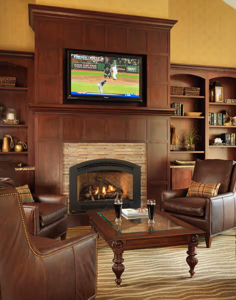 For many, the question is, where does the TV go if the fireplace is the focal point in the room? In recent years, the trend has been to place the TV above the fireplace. This certainly can work, but if you have the room, I actually prefer to place the TV beside your fireplace.