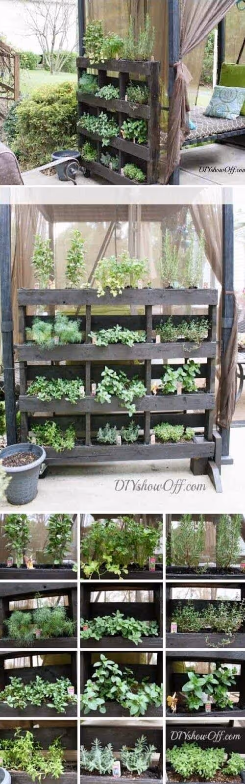 Flowers aren't the only thing you can grow upright! If you think you don't have enough room for a vegetable garden, think again! A vertical garden could be just the answer you were looking for! I love this DIY pallet herb garden. It's pretty and functional...and so easy to create!! These are perfect for apartments, or backyards that may be limited on space.