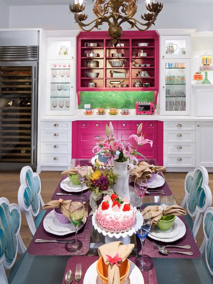 However, if you love the luscious look of saturated colors, then try something a little more bold. Paint your room purple! You might surprise yourself how much you love it! Try a blue dining room and feel like the king or the queen of the table. Or, sprinkle in some hot pink, if you're feeling especially sassy.