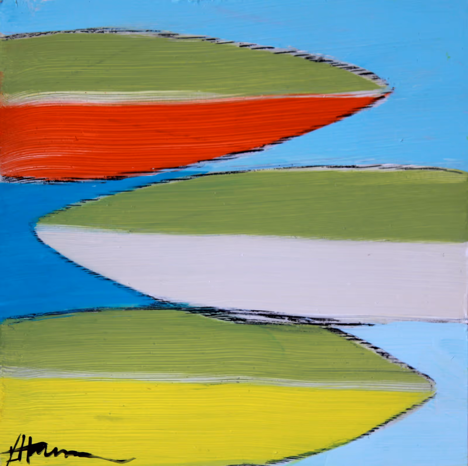 Of course, those who know me know that I love it when art and nature collide, especially when the artist uses organic and textural elements in a new and surprising way, as Karen Burgess has done here. This is actually a close up of bedrock and sandstone. But I love how abstract it is, as it makes the piece feel more modern and leaves the mind to question what it's looking at.