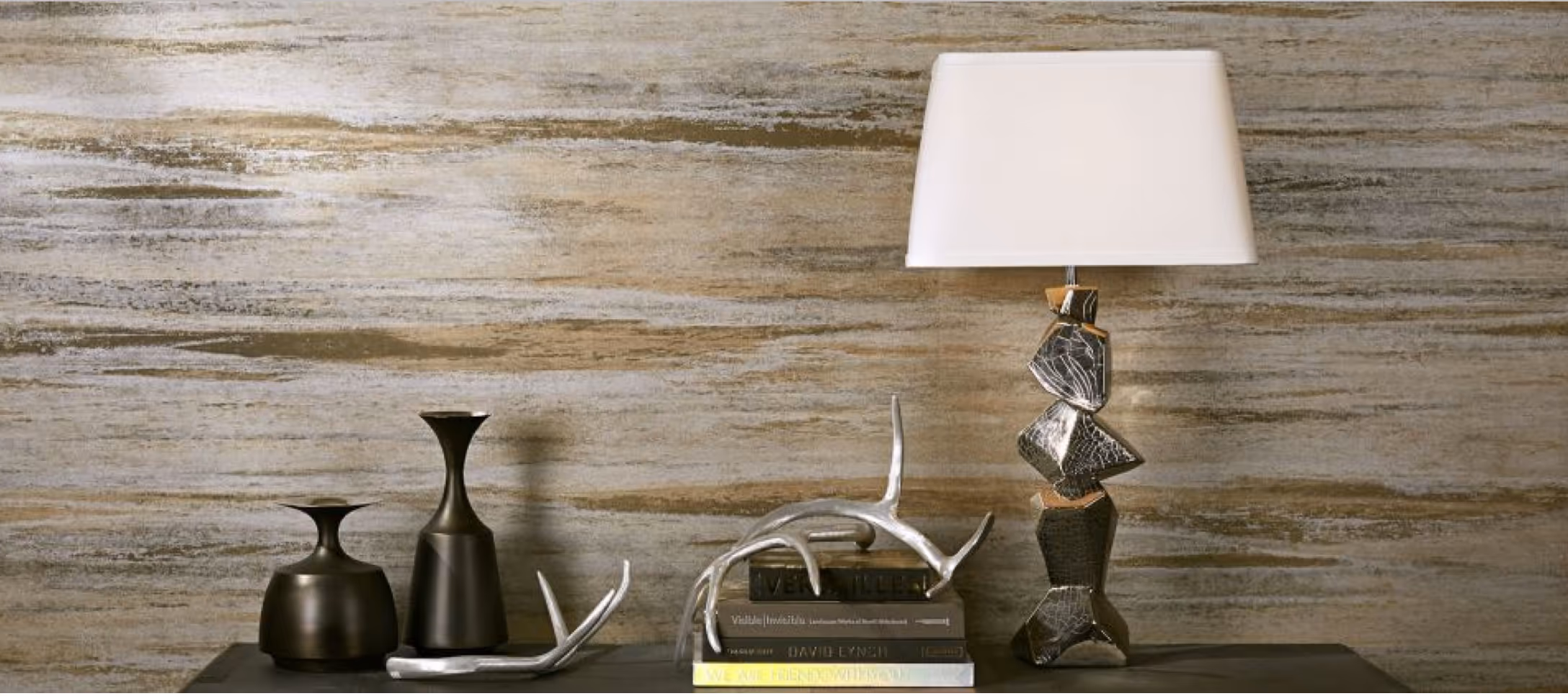 We are using Maya Romanoff's Weathered Metals II collection as well as Philip Jeffries Rivet collection. The trend is toward textural and tactile. The kind that begs you to reach out and touch.