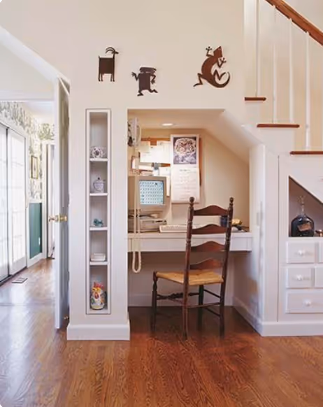 Ideally, pick a space that requires you to retreat from the rest of the house. Be creative- An extra closet in a guest room might work, or the guest room itself. Basements and attics are a luxury for their space and get away from it all ability, but make sure you have ample light and fresh air. And if you are the lucky few, a shed or Folly House might have you begging to stay at work!