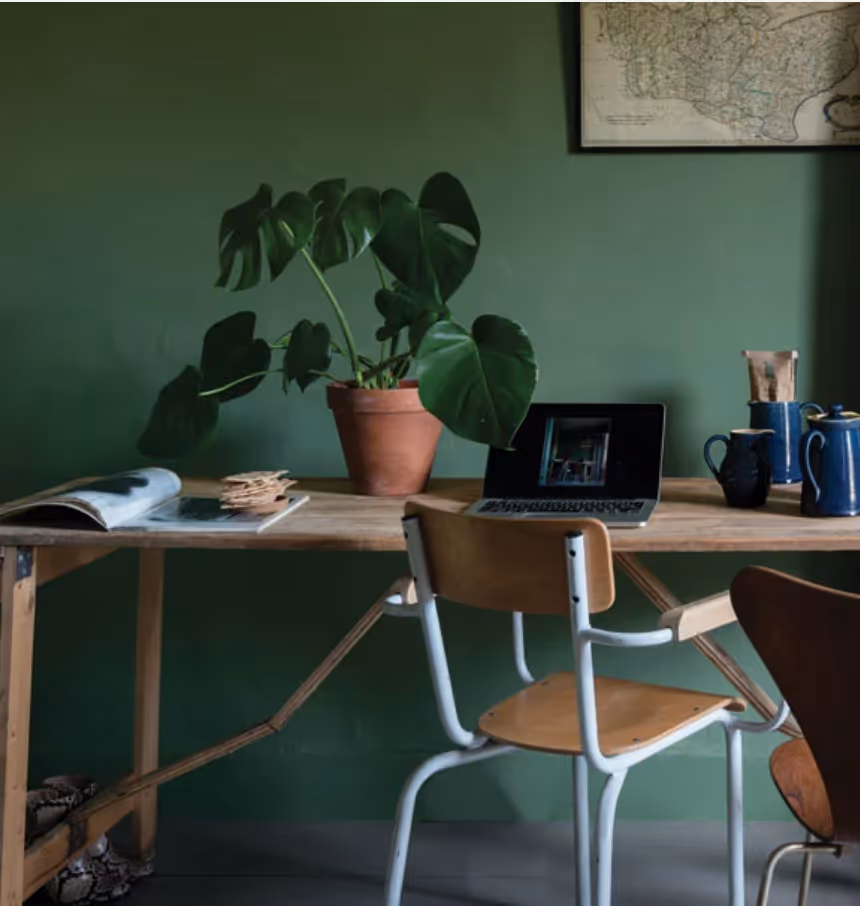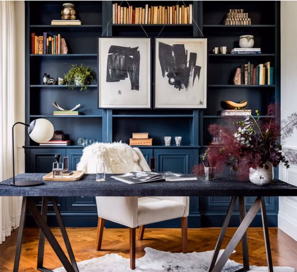 Try those colors in pillow or a throw, but not your walls. Blues and greens are the worlds most prevalent colors and, for the most part, the brain sees them as safe and calming. These tones can set the mood for a productive and calm space that allows work and study to have it’s time.
