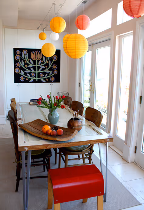 Taking a side step away from the traditional sliding barn door, this door is literally a work of art! I really love this treatment of a sliding door. It's functional and pretty and great for a home that may be a bit on the modern side of style.