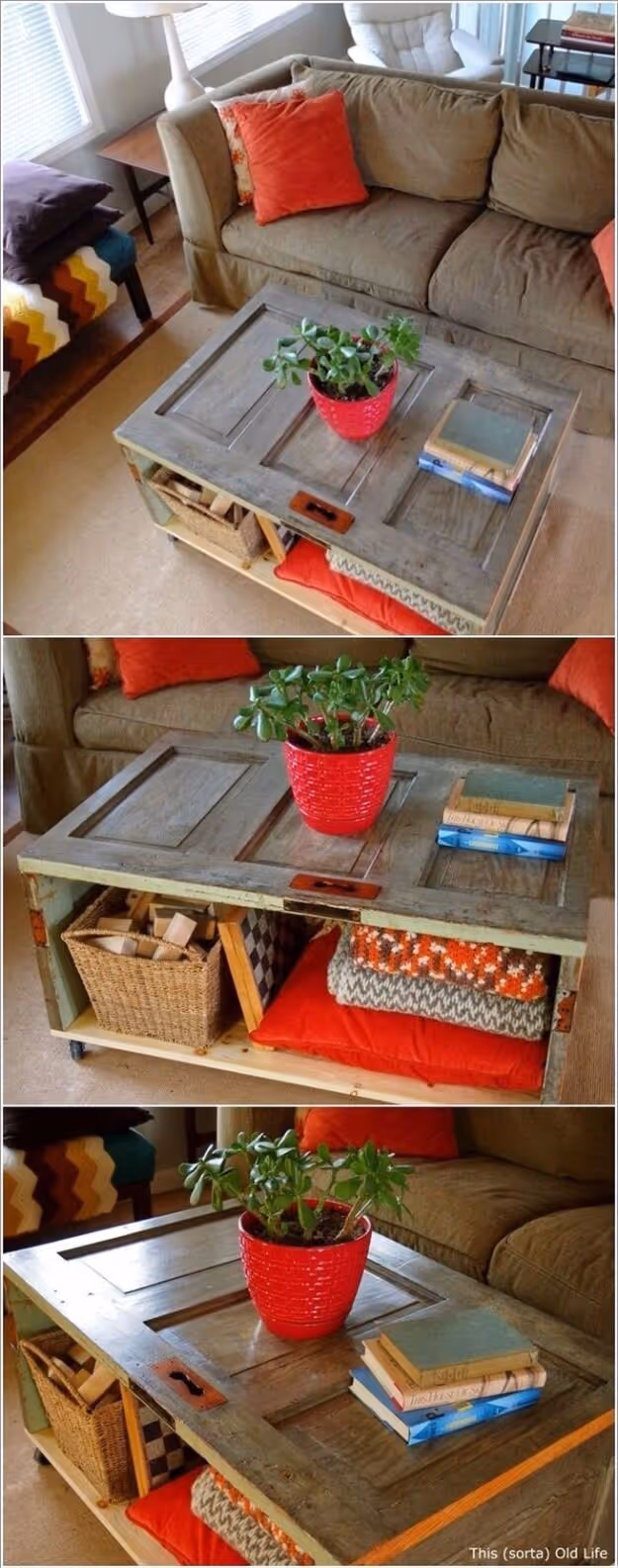 This salvaged door coffee table is so easy and adorable, I might have to channel my inner DIYer and give this project a whirl!